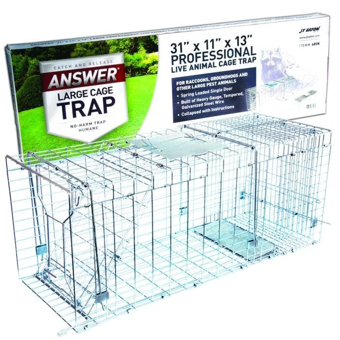 This Answer catch and release animal trap is for the do-it-yourselfer who wants to rid their space of large pests like raccoons and groundhogs.