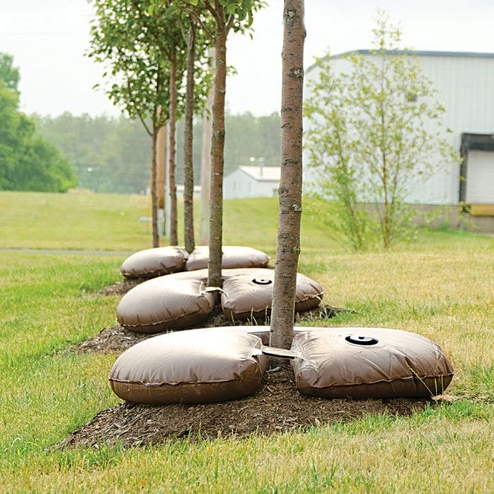 Use the Leonard ArborRain Hydration System to give your plants and trees complete water coverage. This high-capacity version holds 20 gallons of water. It utilizes two removable emitters to release this water slowly over a 5 to 8-hour period. The 1-5/8-inch diameter fill port features a threaded cap and fits a wide variety of hoses for quick filling. This model fits trees and shrubs up to 6 inches in diameter. The durable plastic material contains two additives to protect it from sunlight and cold weather. The Leonard ArborRain Hydration System delivers water deep into the soil. It provides total coverage by hydrating both the root ball and the surrounding soil. This coverage is crucial for newly-planted shrubs and trees as it reduces transplant shock. You can also install multiple ArborRain systems around the drip line of established trees. The helps them thrive in hot and dry conditions. The low profile design of the Leonard ArborRain along with its brown color, help it blend into your landscaping. Additives allow for long life outside in the sun and provide resistance to cold weather. We cover this product with a 5-year warranty