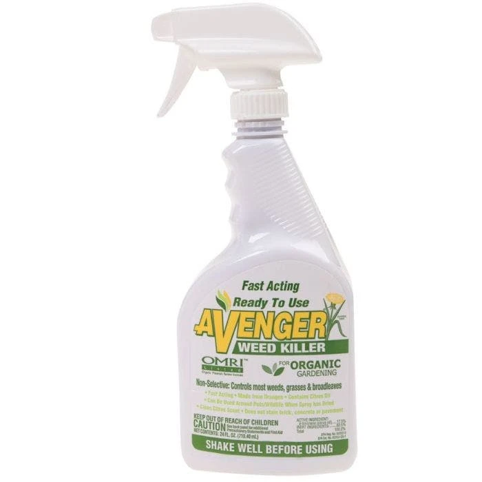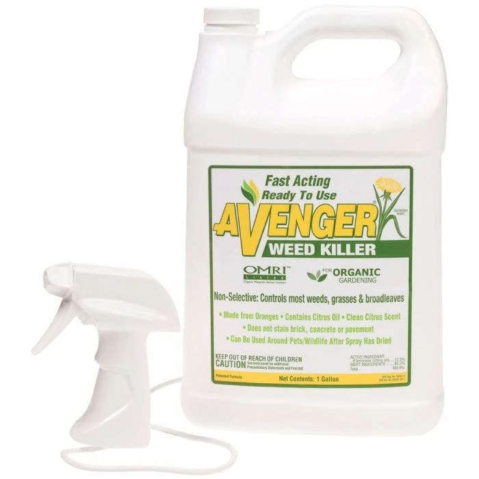 Use Agrisel Avenger Organic Herbicide as a natural alternative to standard weed killers. This is an OMRI-listed, biodegradable non-selective herbicide. It has zero negative effects on soil, water, animals, or people. The active ingredient in Avenger Organic Herbicide is d-limonene (17.5%). D-limonene is the primary component of citrus oil. This chemical’s natural degreasing property strips away a weed’s waxy cuticle. Without this cuticle, the weed dehydrates and dies. Avenger works on broadleaf and grassy weeds. Apply around buildings, fences, driveways, landscape areas, and more! This product is ready to use and requires no mixing.