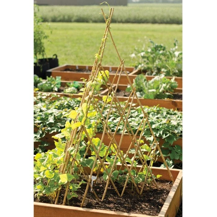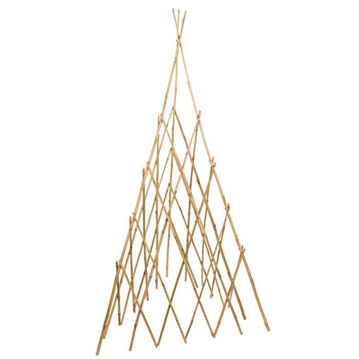 Our popup three-sided bamboo teepees are self-standing and easy to use. Simply open to place over plants or you can grow vining plants around its perimeter.