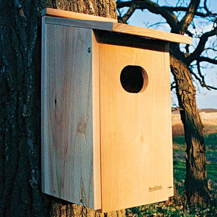 The Woodlink Wood Duck House is constructed of durable cedar and built Ornithologically correct. A 1/2″ air ventilation gap is provided at the top as well as a drain hole at the base. Assembled in the U.S. by hand with screws (not nails). The front panel opens easily for cleaning. Product constructed of re-forested, kiln dried, inland red cedar. Proudly made in the USA.