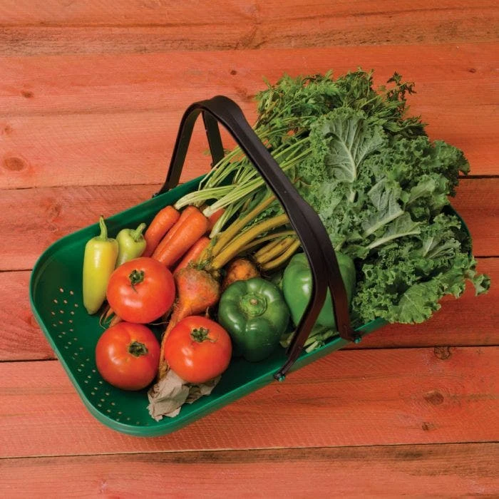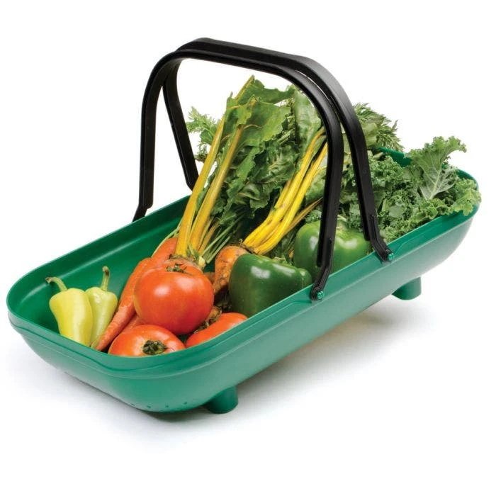 This Colander Trug is designed to make bringing in your harvest easier by allowing you to conveniently gather, carry and clean all of your fruits and vegetables. Made from durable plastic and abundantly sized at 22″L x 12″W x 4.75″H, this trug has plenty of room. The handle is not only comfortable but strong and durable. The base of the trug features drainage holes so you can easily rinse your harvest outside or in.