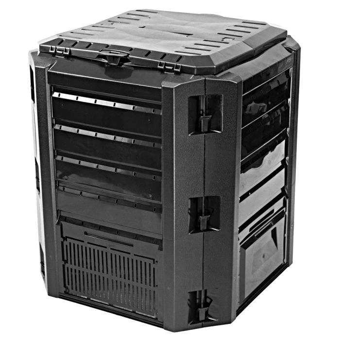 This is a large standing compost bin. It’s one of the few standing bins that requires minimal, tool-free assembly. Created using innovative Polish design, the entire unit snaps together in a matter of minutes. Once assembled, the unit can sit in a garden or in an out-of-the-way location. Simply add composting materials and let nature do the rest.