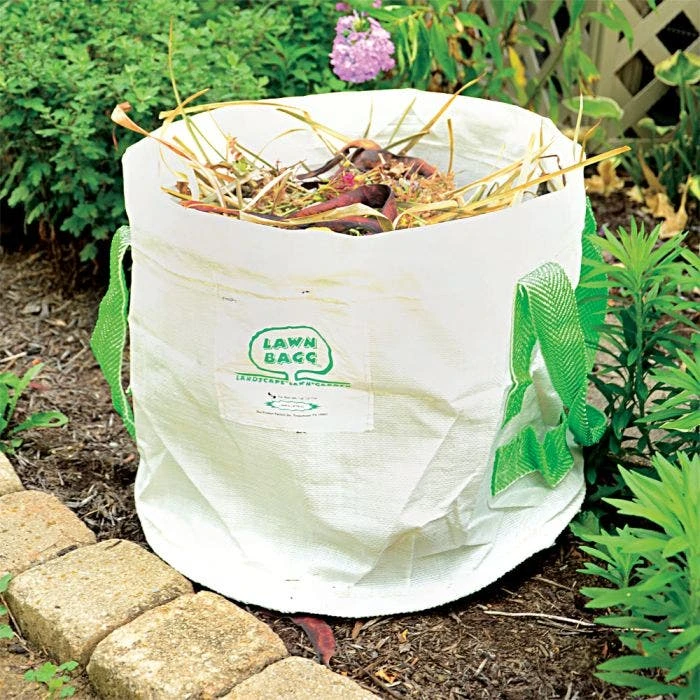 The Lawn Bagg™ is a free standing bag used for the collection, storage and hauling of yard wastes, such as grass, leaves, branches, weeds, etc. These flexible, lightweight woven polypropylene bags are puncture resistant and will not tear. Double-layered bottom for extra durabilty. Just fold away for easy storage when not in use. Available in 5 convenient sizes. Lawn Bags are perfect for all your lawn maintenance activities especially grass clipping collection and leaf disposal. 15in x 15in x 17in