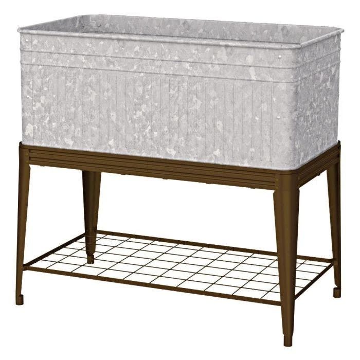 Beautiful as a planter or fill with ice and use as a chiller tub for your next gathering. Outfitted with 3 removable drain plugs. A pair of pliers and a screwdriver is all you need to put it together. Finished size is 35″H x 41-1/4″W x 22″D.