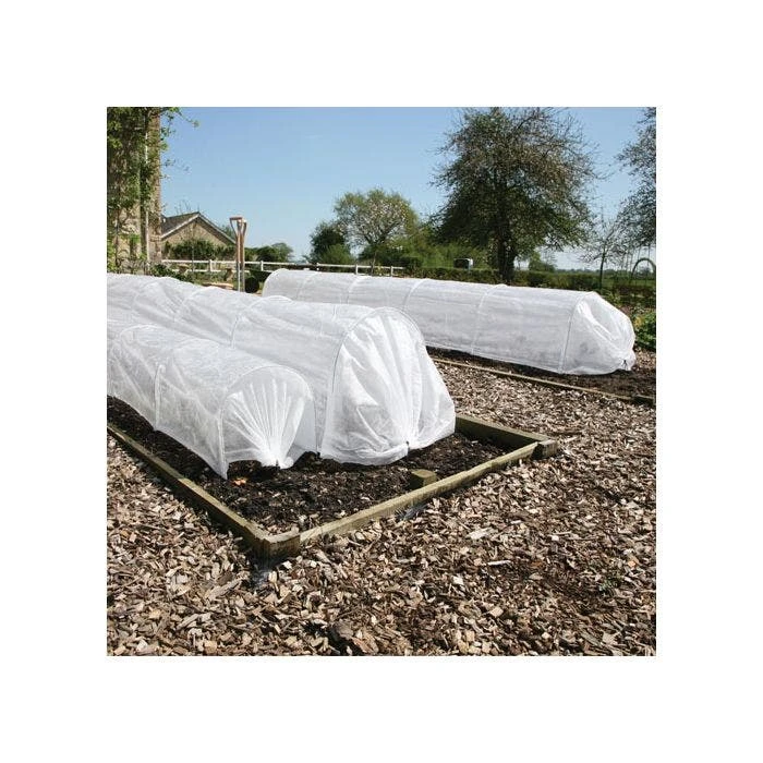 Made from UV-stabilized, 45gsm heavy-weight polypropylene fleece and rust-proof galvanized steel hoops. A generous size at 9.8 feet long, 24 inches wide, 18 inches high. Great for larger plants or to cover a double row.