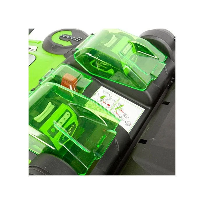 The GreenWorks G-MAX 40V Li-Ion Cordless Mower’s 2-in-1 feature offers versatile use with mulching and rear bagging capabilities, 20in cutting deck and a cutting height range from 1-3/8in to 3-3/8in. Includes 40V 4Ah and 2Ah Li-Ion batteries and charger, rear discharge bag, mulch plug, isolator key and owner’s manual. Up to 70 minute run time.