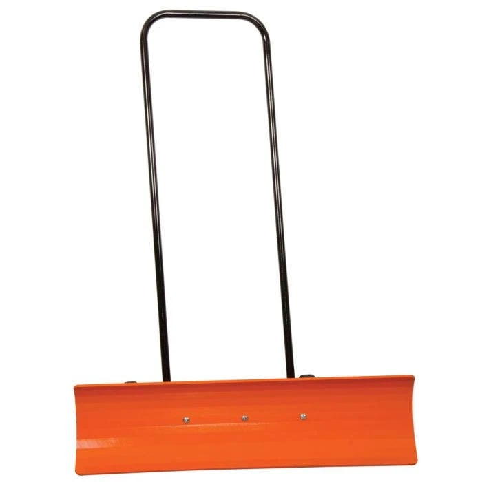 Angled flip blade moves snow to one side, even when pushing from two directions, wind rowing snow off surfaces without any lifting. The tall 10-1/2in blade height prevents snow from spilling over the blade top. Sturdy 1/4in UHMW (Ultra High Molecular Weight) poly blade has superior wear properties and impact strength. Powder coated tubular steel handle, 36 inch blade width.