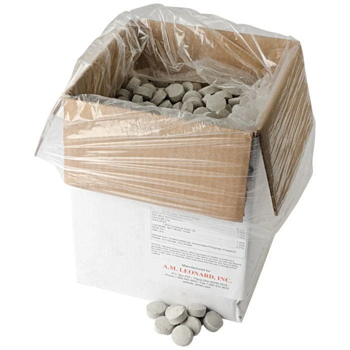 Compare the value! Leonard’s fertilizer tablets eliminate the need for measuring small quantities of dry fertilizer, and provide a scientifically safe plant food. Designed to deliver bigger, healthier, greener plants at a value price! Slow release, ureaformaldehyde for prolonged release nitrogen.