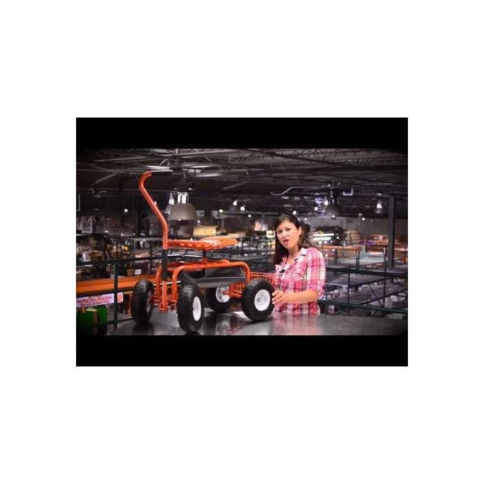 The Leonard Garden Scoot features a welded 1 inch steel tube frame, a large storage basket and an under-seat polyethylene tray. It eliminates the strain caused by kneeling, squatting, and stooping and simplifies even the most tedious tasks. It also smoothly operates on nearly any surface, with flat-free tires that never go flat or lose pressure. The product width is 32 inches excluding handles and basket, handle width is 30 inches, and the overall weight is 35 3/10 pounds.