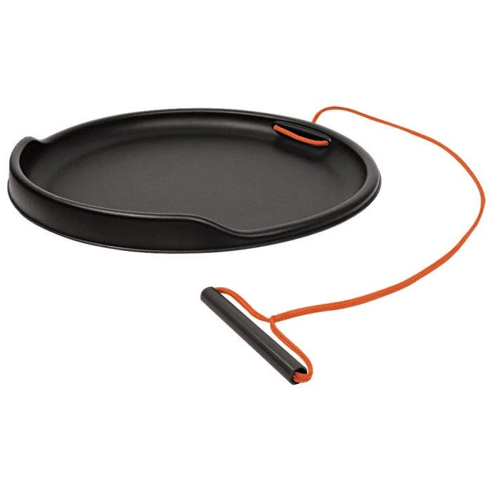 No, it is not a sled, it is the Leonard GardenGlide Transporter! We make this tool using 100% recycled high-density polyethylene. It measures 28-1/2 inches in diameter on the outside and less than 4 inches tall. This lightweight disc weighs only 3 pounds yet has a working capacity of 200 pounds. It features a 54-inch braided nylon rope connected to a plastic handle.