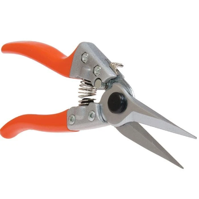 Lifetime warranty. Ready to take on the toughest shearing tasks, these blades are made from strong high carbon steel that holds a sharp edge. Then the blades are finished with a hard chrome plating to resist corrosion. Long 2-inch blades tackle flower cutting, dead heading, and seasonal perennial cutback with ease. Sturdy aluminum handles with a non-slip vinyl grip. Conveniently squeeze to open. 2-inch cutting edge; 8.625-inch overall length.