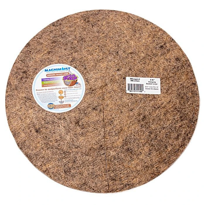 With MagniMoist lining your container, water won?t leave your basket until your plant is completely hydrated. Its Smart Fibers (all-natural Kenaf, a hibiscus derivative), deflect water back into the dry soil above. Only when the soil is fully saturated will MagniMoist become porous and release any excess water. Reduces fertilizer runoff, too! A U.S.-grown alternative with NO chemical binders and NO fumigants (try finding that with imported coco or moss!)