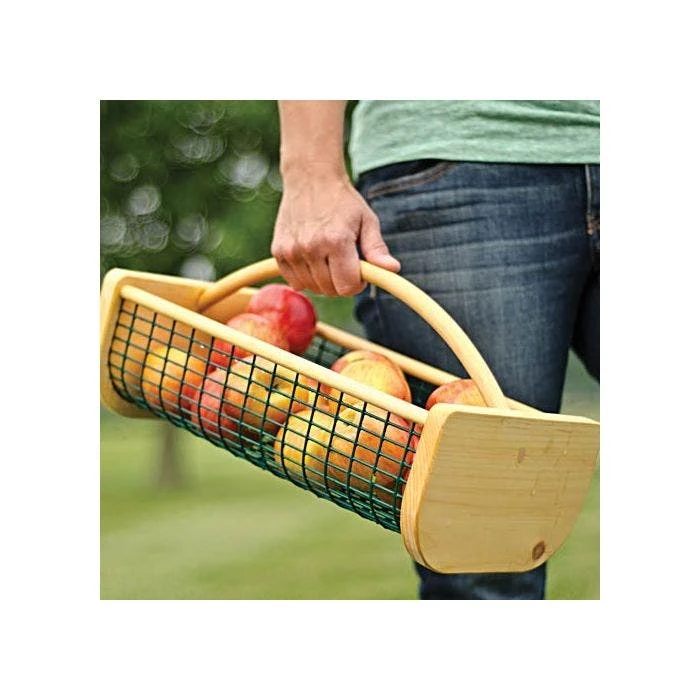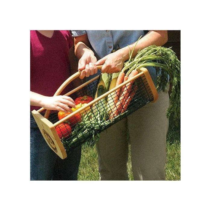In olden times, these hods were used for carrying everything—from bricks to laundry! Styled after a traditional clam hod, this version is built to last from quality hard and soft woods and durable vinyl-covered mesh. Constructed with 3/4-inch thick pine sides and birch side rods, it also has a sturdy, food grade PVC-coated wire body, and a steam bent handle for a handsome look. Now in two sizes! Garden Hod Junior is ideal for carrying smaller loads and just the right size for your little helpers! 16in L x 9in W x 7in H and hold up to 8 quarts (or 1 peck).