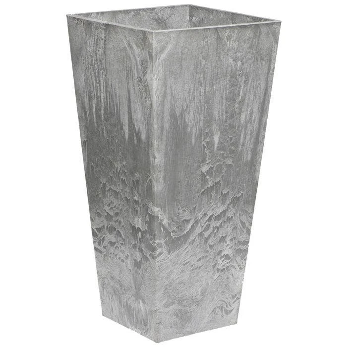 The Ella Tall Planter stands out as a striking addition to any indoor or outdoor space, seamlessly complementing sophisticated décor. Featuring a contemporary marbled design, this planter is the perfect fit for entryways, porches, patios, and decks. Made from durable Artstone, a blend of high grade stone and resin, it offers not only elegance but also UV stabilization, frost resistance, and BPA-free composition. The integrated self-watering system ensures plants receive continual hydration and proper drainage, making it easy to maintain their vibrant green and lush appearance. With its generous size, the tall square shape accommodates larger plants, shrubbery, and even dwarf trees. This beautiful, lightweight, durable planter allows you to proudly display your seasonal arrangements in style.