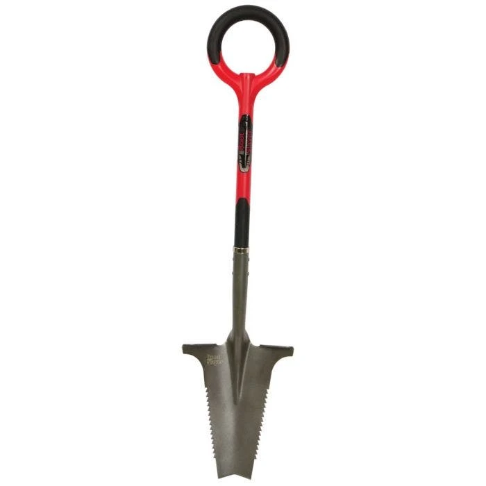 A Root Slayer is a multipurpose shovel that can replace other tools such as hatchets, loppers, and saws needed on your job site. It is specially designed to dig through roots up to 1.25″ diameter in a single stroke.