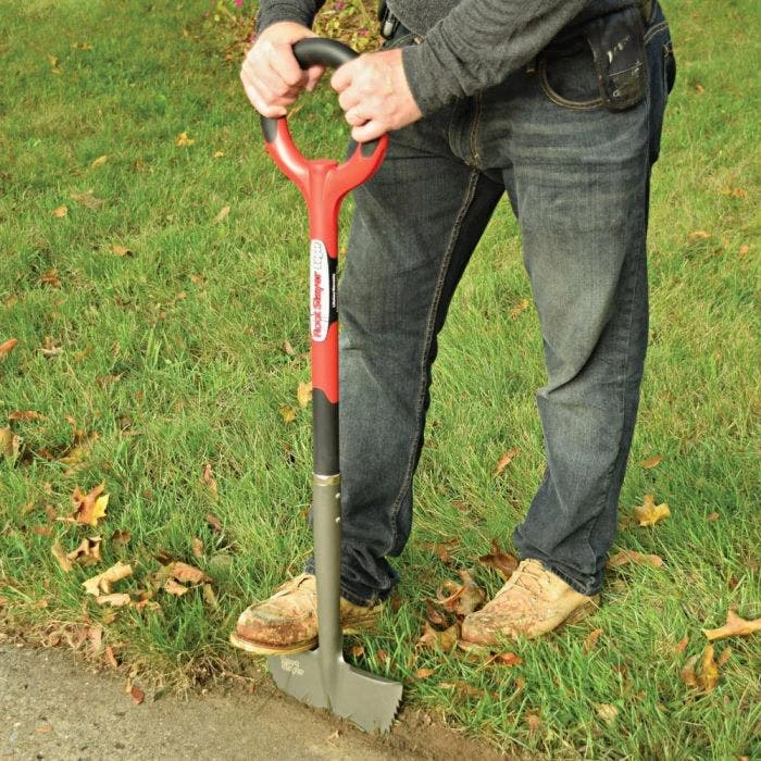 - Full length carbon steel shaft: The Root Slayer Edger features a full length carbon steel shaft encased in resin. This feature ensures that the handle will not break or bend during use and provides added durability.