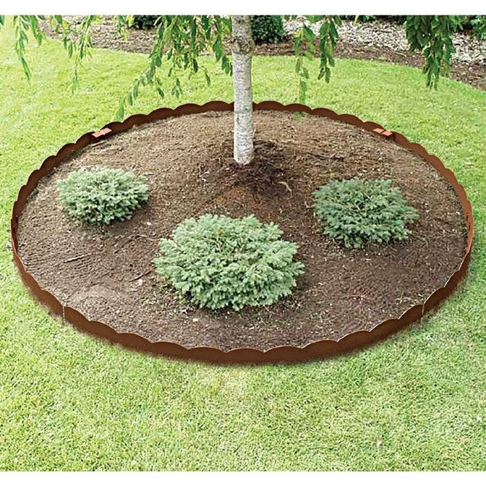 Two-in-one heavy-made steel edging defines your beds and adds an air of distinction to your landscape. A durable powder-coat finish further enhances the design. The landscape edging panels can be bent slightly to create curves.