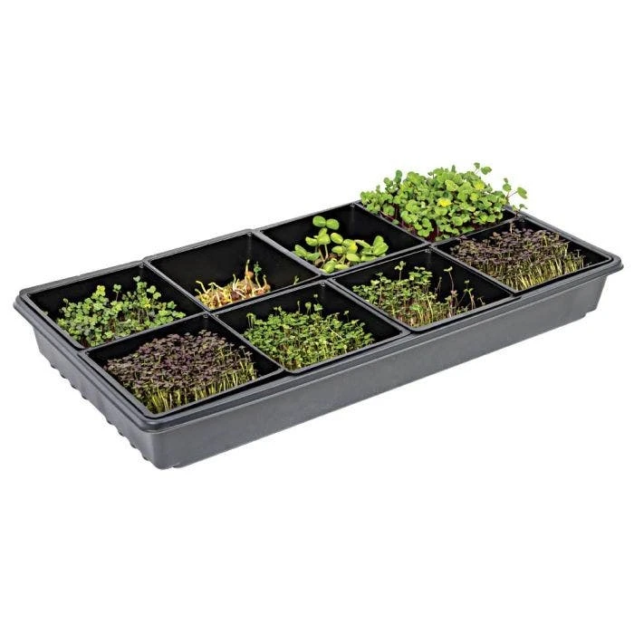 Yes, the kit is designed with 8 individual trays that nest inside a single 10″ x 20″ tray. This allows you to grow up to 8 different crops simultaneously or plant in succession so that you can harvest continuously.