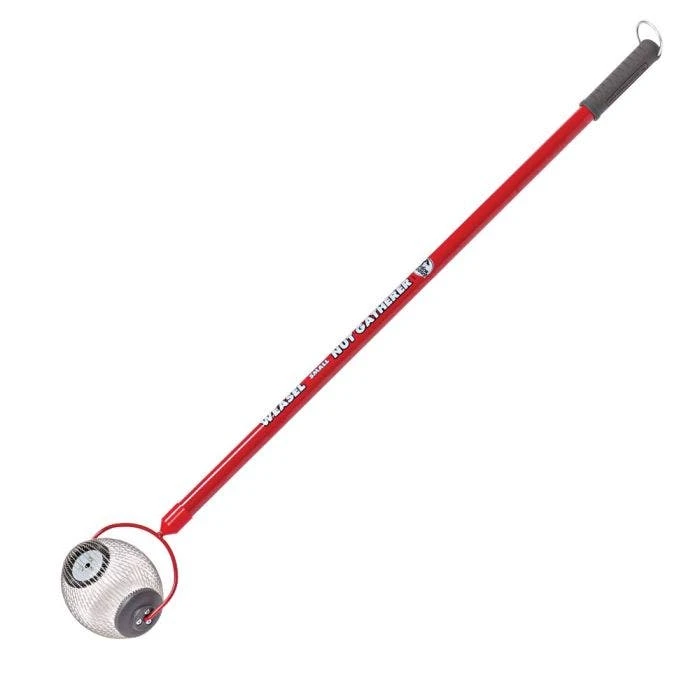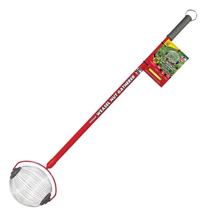 Picks up objects 3/8″ to 3/4″ in size such as small acorns, nuts, buckeyes, and other similar sized objects. Capacity is approximately 1/2 gallon. The Small Weasel® Nut Gatherer is an easy to use rolling pick up tool for acorns and more. No bending over. Saves time. Simply apply the nut gatherer to the area to pick-up with a back-and-forth motion. Repeat the process until the gathering basket is at full capacity. Spread the tines apart over a bucket to empty.