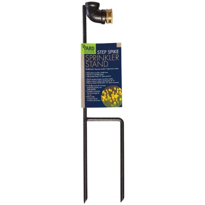 The Yard Butler spike sprinkler base makes lawn care easy and efficient. The dual spikes ensure that your sprinklers stay securely in place 10″ above ground, providing even coverage for your entire yard. This heavy-duty, powder-coated stand fits all standard 1/2-inch sprinkler heads, making it perfect for any watering need. With easily replaceable sprinkler heads and a durable, stable design, this base won’t fall over, even in strong winds or with stiff hoses. Plus, with Yard Butler’s lifetime warranty, this sprinkler base is built to last a lifetime!