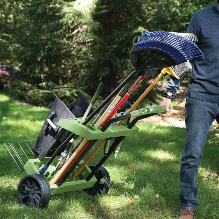 - Organizes and mobilizes up to 18 long-handled tools in just 4 square feet