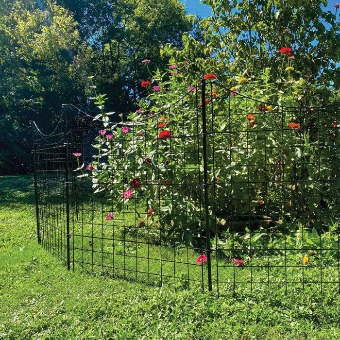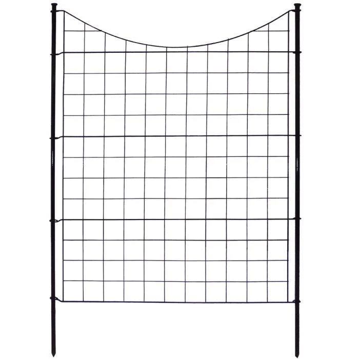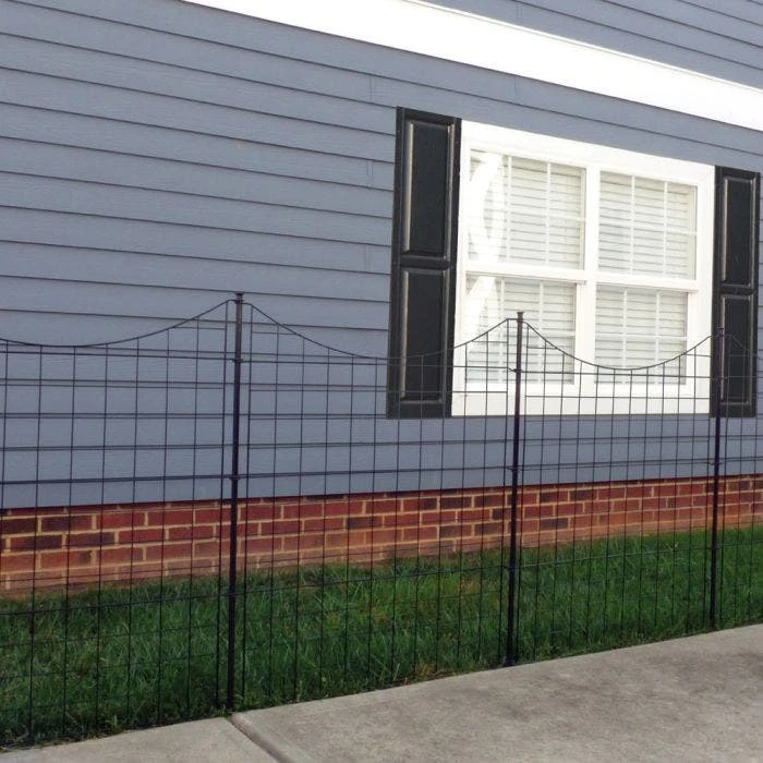 Create instant landscaping with this easy to install black metal fence. Each panel measures 39″ H x 36″ W and you will receive 5 panels. The subtle design will allow it to blend with your landscaping to define gentle boundaries. Install your fence sections in minutes with a no-dig installation. This means you don’t need to tear up your yard or clean up dirt after installation. For a gate option, this fence is compatible with SKU WF29014.